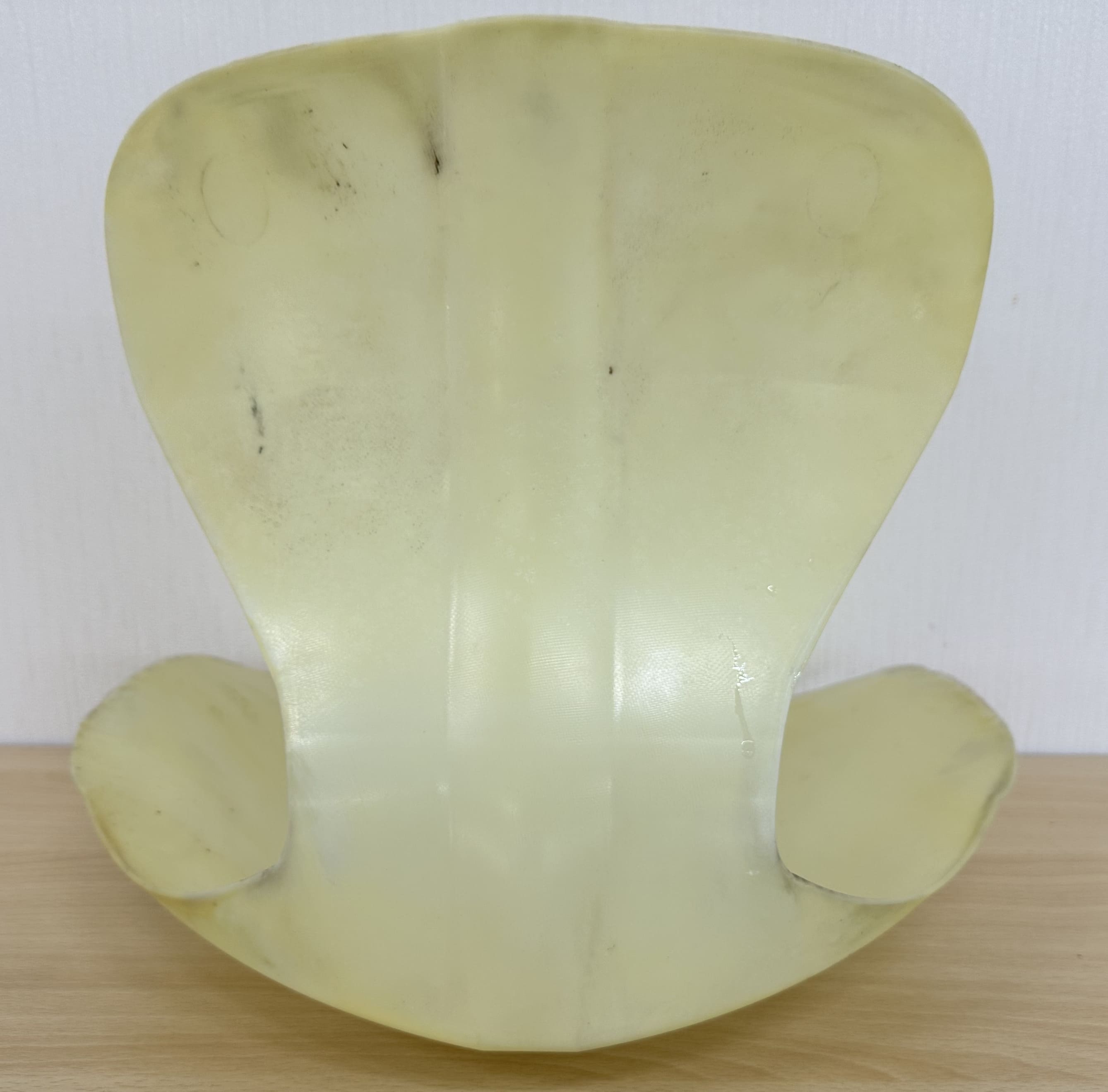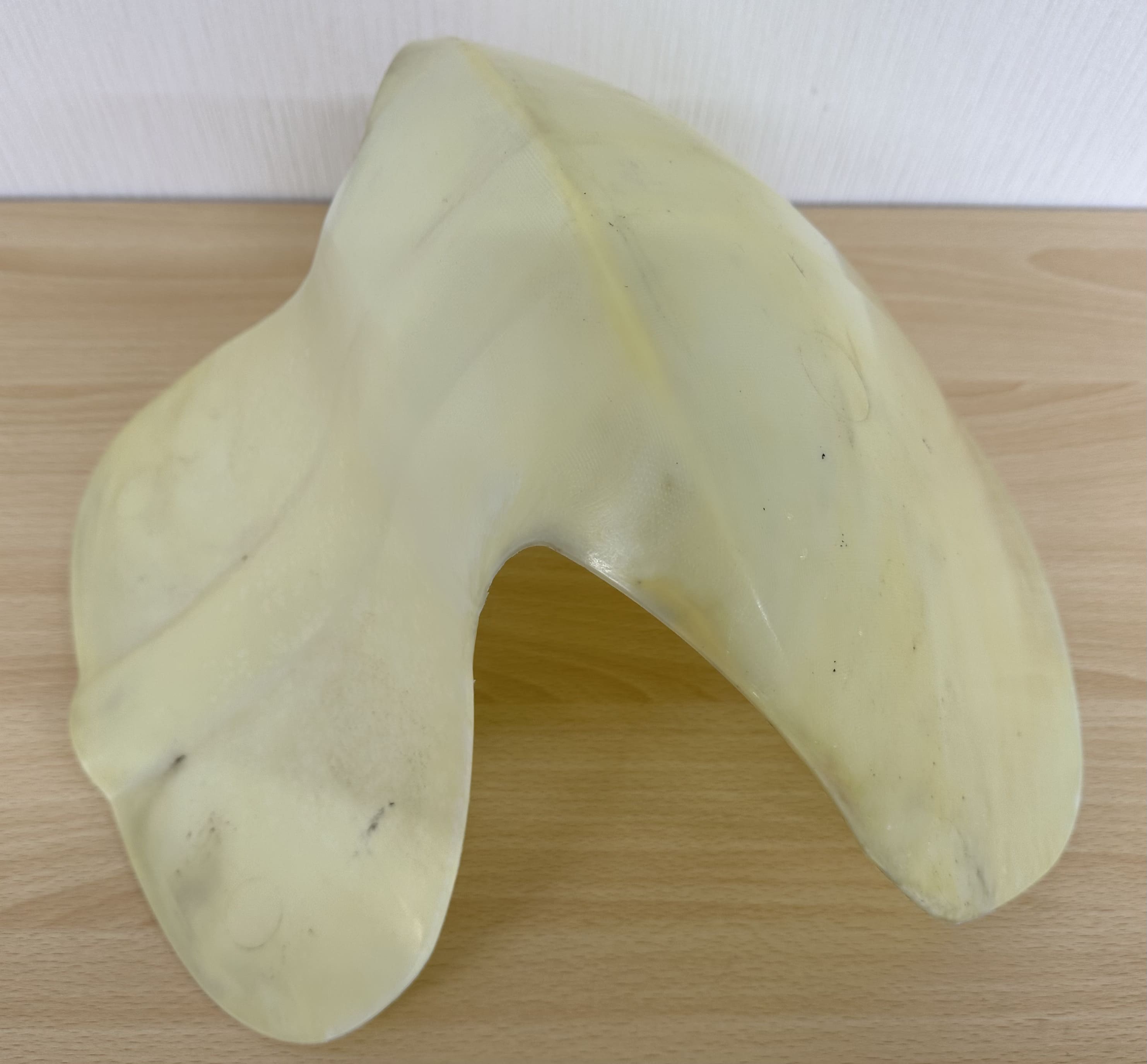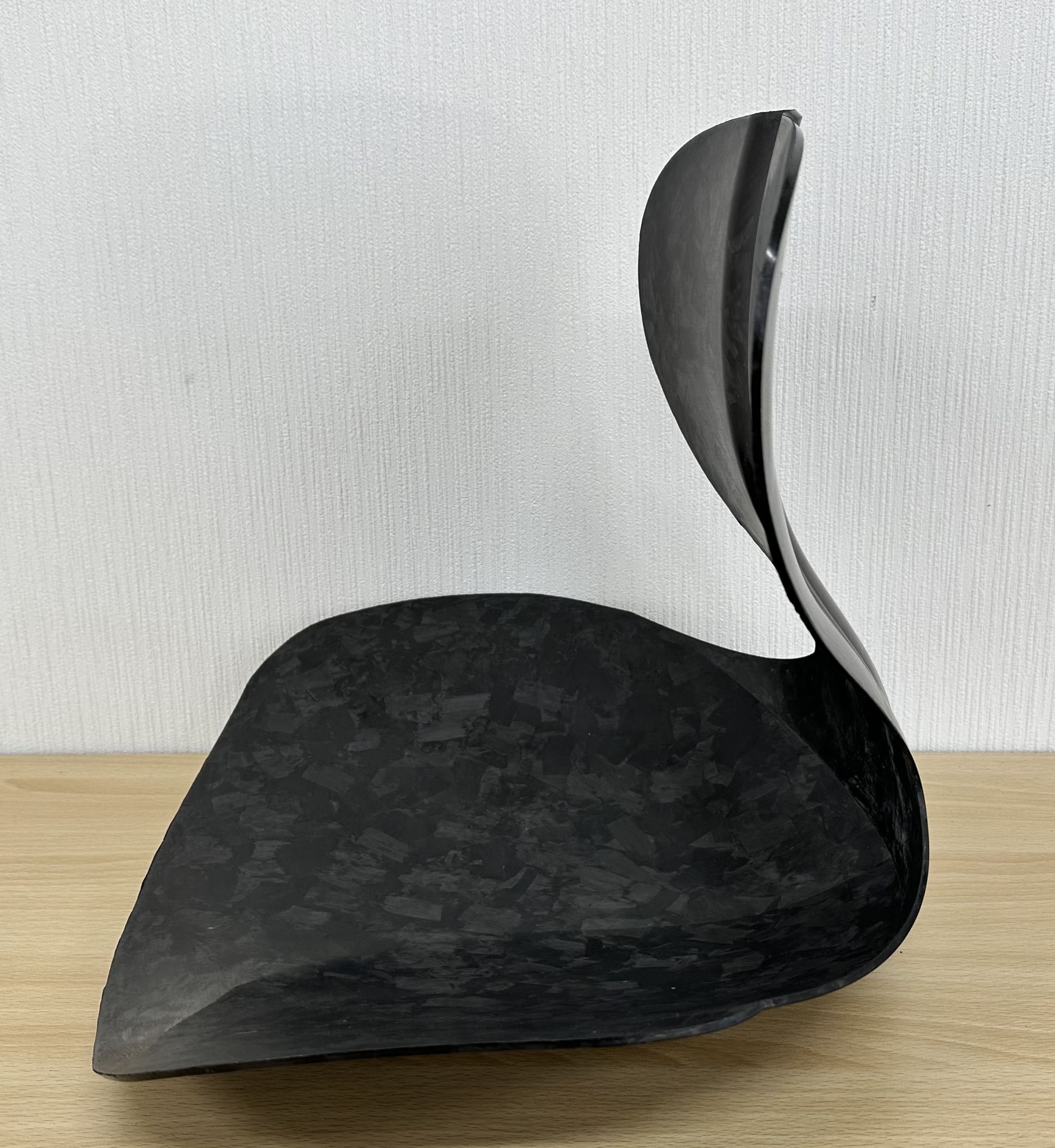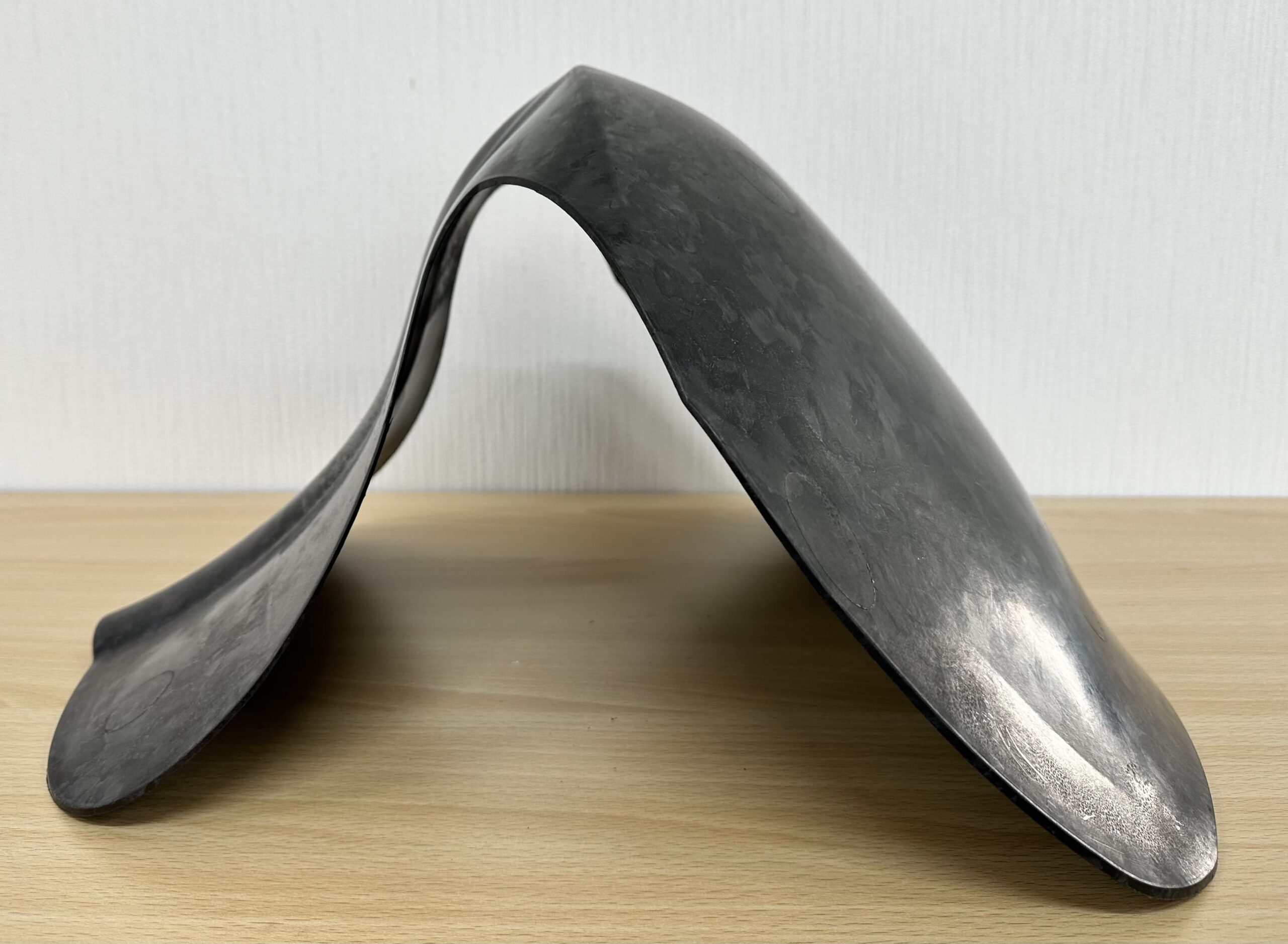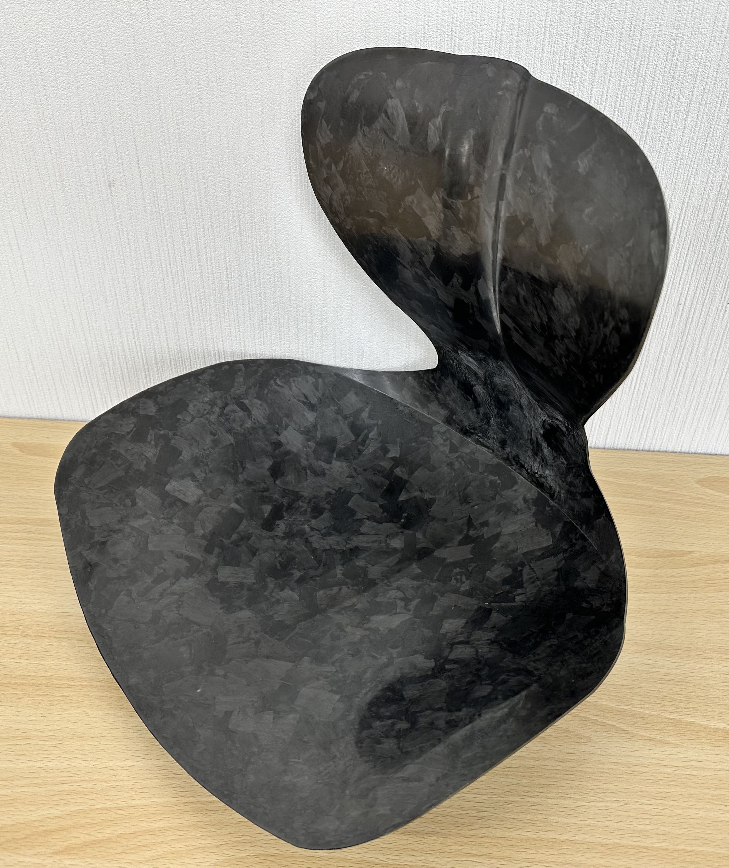 一般的な成形方法であるインジェクション(射出成型)では座椅子製品の製品肉厚4~6tほどの製品ありますが今回、CFRP複合材料の特性である軽量化と強度を活かして全面2tの製品を成形しました。